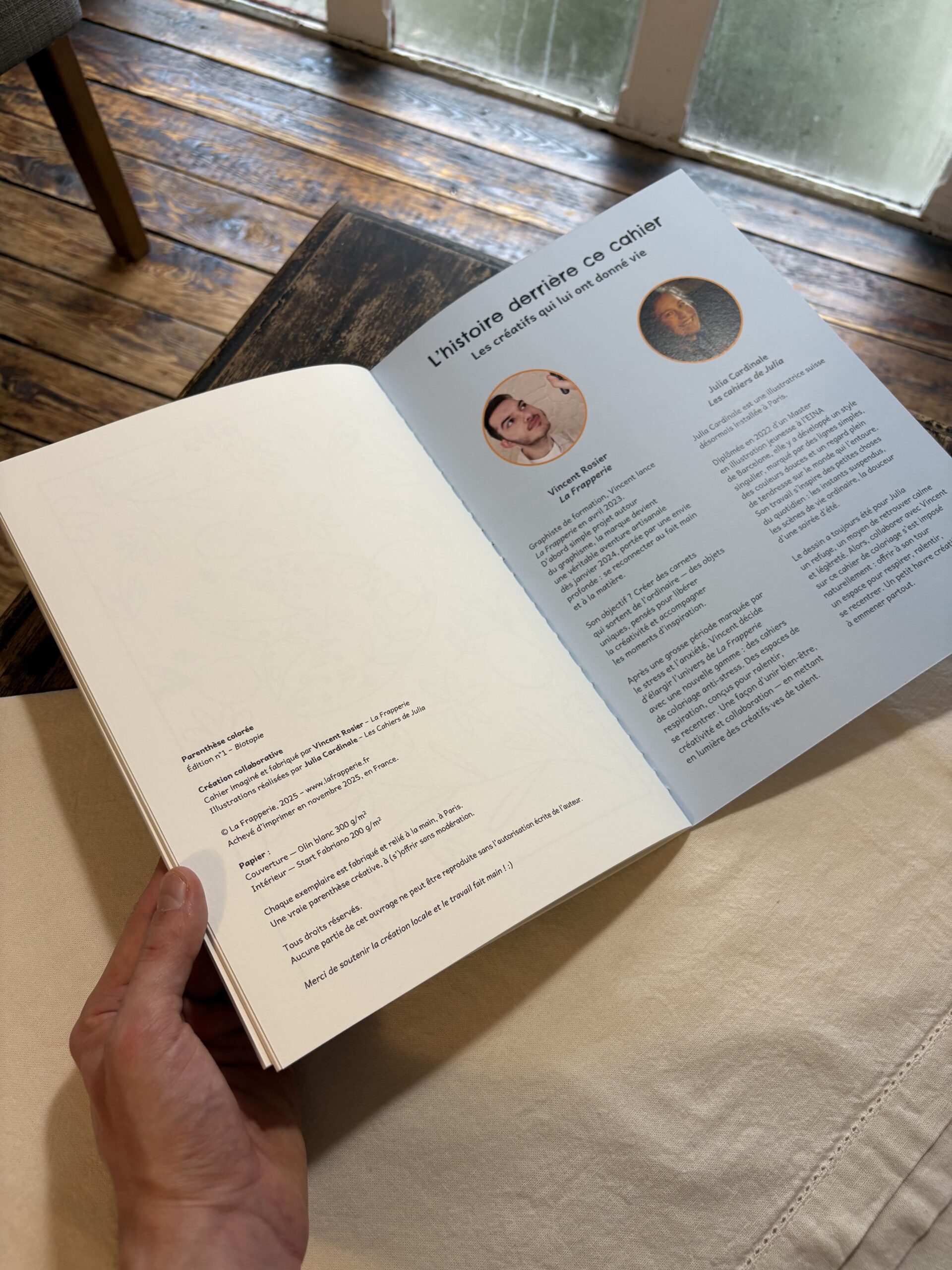 Fabrication : chaque exemplaire est fabriqué et relié à la main, à Paris